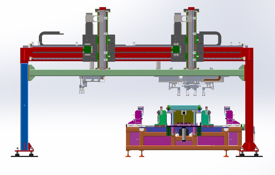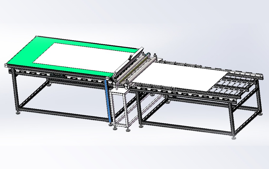 本生產(chǎn)線依據(jù)用戶需求,進行“量身”設計,由層壓前鋪設傳輸線;通過不同機構的傳輸、轉(zhuǎn)運、變向、定位、旋轉(zhuǎn)/釋放實現(xiàn)組件封裝過程的流水化操作,可提高單位組件生產(chǎn)效率。